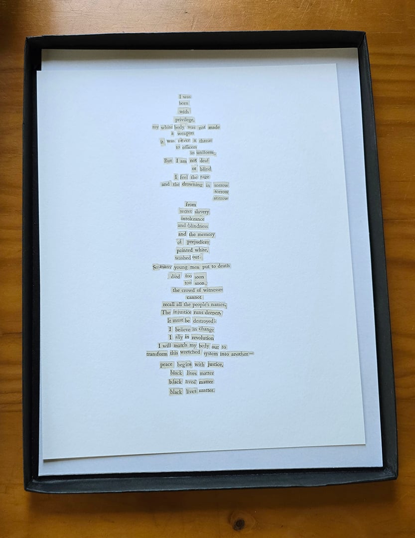 Each book box contains 27 full-color prints on 100% cotton fine art paper with a vellum overlay, all glued together in a watercolor block form. The collection is to be deconstructed by the viewer in order to experience the individual poems, which will then live inside the linen box as loose pages.